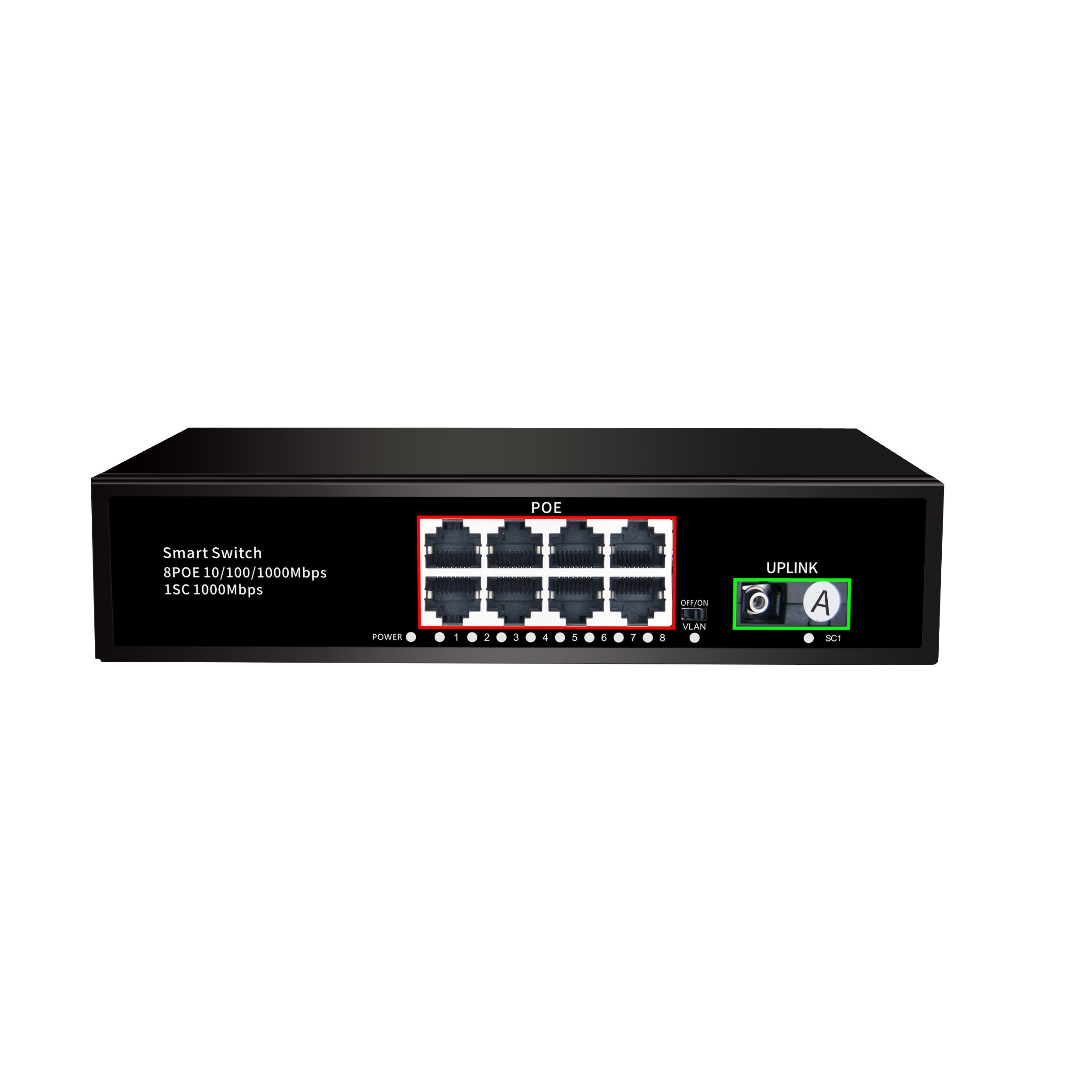 | ES-GE8P1F-xx | 10/100/1000M 8POE+Uplink 1Fiber 1*9 xx=550~100km |